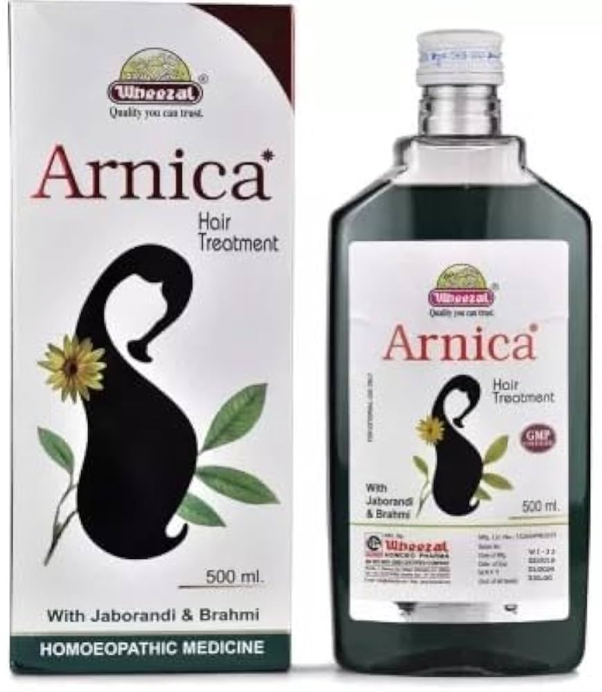 Wheezal Arnica Hair Treatment (Oil) is your ideal Hair Oil for complete hair treatment, it maintains healthy hair growth, slows down age-related hair loss, nourishes the scalp and hair follicles and maintains healthy blood flow to the scalp. Product Description of Wheezal Arnica Hair Treatment Oil It is a storehouse of goodness, it contains essential oil of thymol (antiseptic), sesquiterpene lactones (antimicrobial active plant chemicals). Improves hair-health by providing nourishment, it nourishes your hair cells and helps in the growth of the hair, prevent the formation of split ends of the hair. It nourishes the hair roots and make hair grow thicker, a classic ayurvedic herb used for hair growth. It also serves as nervous tonic for brain. It controls hair fall by strengthening hair roots, provides scalp nourishment and checks dandruff, it provides relaxation and soothing effect on the brain while improving blood circulation to the scalp. It prevents itching of the scalp (scratching sensation) and eczema of head. Ingredients of Wheezal Arnica Hair Treatment Oil Arnica Q 0.86ml Cantharis Q 0.65ml Brahmi Q 0.65ml Jaborandi Q 0.65ml China Q 0.64ml Perfume 0.70ml Oil base Qs Arnica Benefits : Usage of arnica extract rejuvenates your scalp and stimulates the hair follicles, helping to strengthen your hair and preventing it from falling prematurely. Arnica is combined with other ingredients like calendula and jaborandi in homeopathic Arnica Montana shampoos to provide soft and manageable hair. Arnica is used at a concentration of 1% to 2% in hair care products. Being an antibiotic, it can effectively cure scalp infections. It strengthens each and every hair strand and helps prevent split ends and premature graying of hair. All you need to do is massage arnica hair oil on your scalp from the roots to the tips before going to bed and wash off the next morning. This will nourish your hair and prevent these problems by providing the requisite nutrition to your hair follicles. Arnica cleanses the excess oil and sebum from the scalp, giving it a natural shine. By removing dirt, debris, and oil from the scalp, it also helps combat dandruff and itchiness. This also helps in preventing tangled and rough hair. How To Use Wheezal Arnica Hair Treatment Oil Take about 4-5 ml of Lords Arnica Hair Oil in the palm of your left hand and dip your right hand finger tips into it. Raise both the hands (to avoid dripping on the body or floor) towards the top centre portion of the head. Now run your finger tips through the hair like a comb ensuring it touches the hair roots and rub gently. Ensure you repeat this exercise to cover the whole surface area of your scalp on all sides. It is recommended to apply the oil at night before bed and wash plus rinse it the next day morning. Why Should You Use Wheezal Arnica Hair Treatment Oil ? ( USP ) Wheezal Arnica Hair Treatment Oil is one of the best remedy to give 100% nourishment to hair.