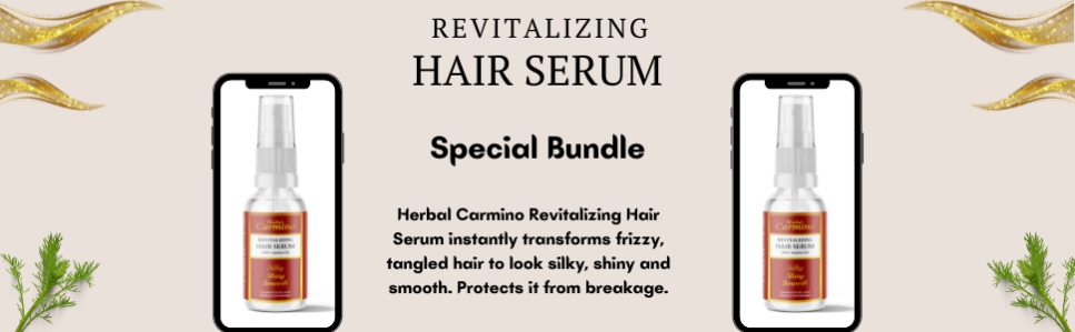 Herbal Carmino Revitalizing Hair Serum instantly transforms frizzy, tangled hair to look silky, shiny and smooth. Protects it from breakage.