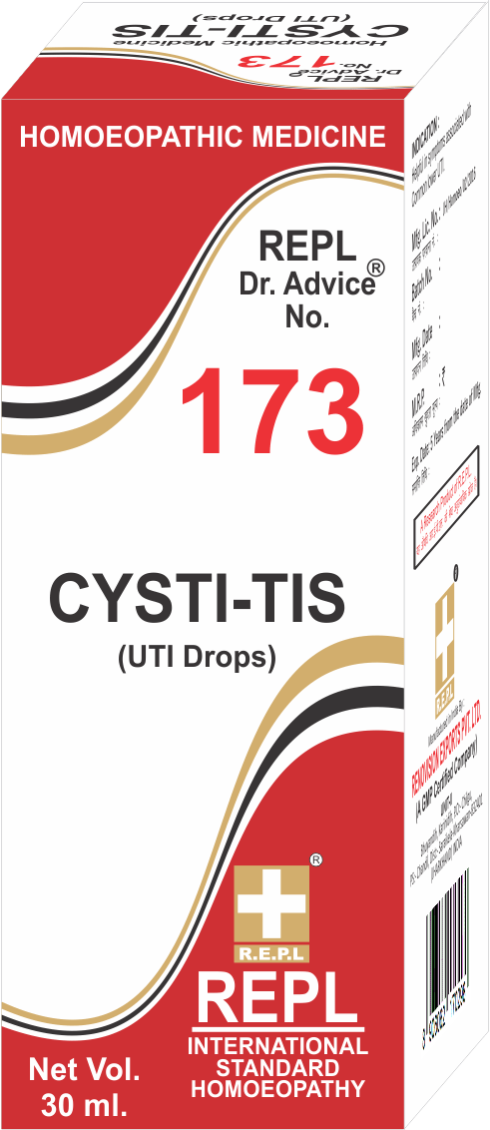 REPL Dr. Advice No.173 Cysti-Tis Drop is an effective homoepathy medicine that can help to manage UTI problems and also enhances the function of the urinary system. It may also help to improve the bladder function and health.